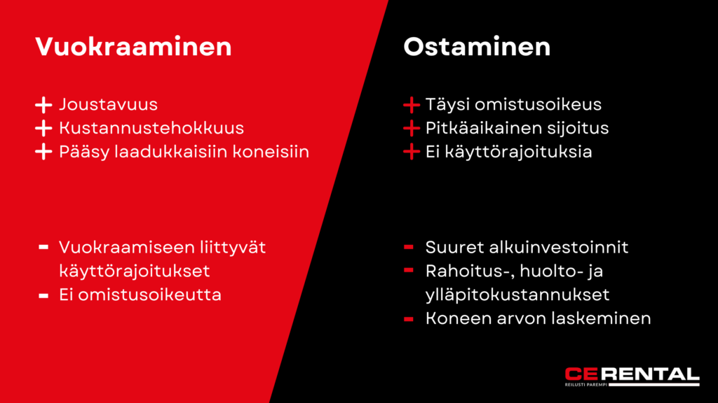Koneen vuokraus vai ostaminen – mikä vaihtoehto sopii sinulle parhaiten?